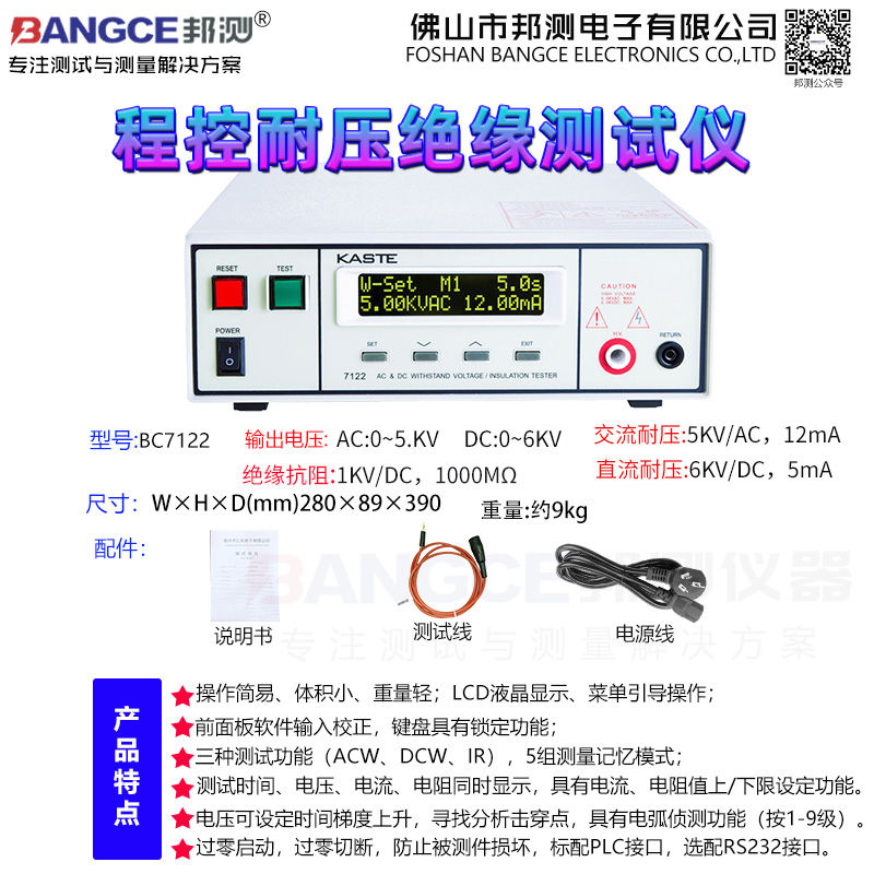 7100系列程控耐压/绝缘测试仪适用于家用电器、电脑周边设备、仪器仪表、电机产品、通信产品、照明电器、电子零部件、电子变压器、压缩机、电热管、电线电缆以及强电系统的安全耐压和漏电流的测试。同时也是科研实验室、技术监督部门不可缺少的安规试验设备。
