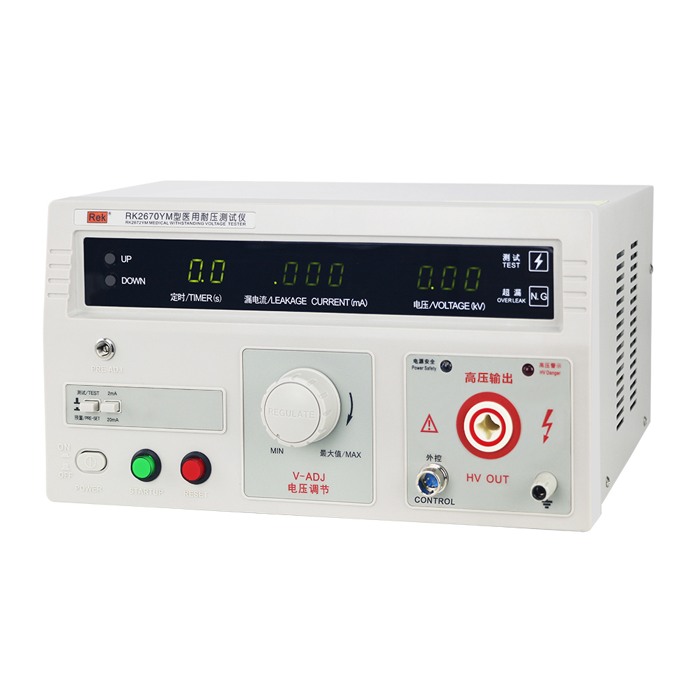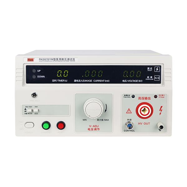 RK2670YM/RK2672YM/RK2672CY医用耐压测试仪具有常规耐压侧仪所有的功能外,增加了电弧(闪络)侦测功能,通过外接示波器,可以直观、准确、快速、可靠的检测到被测电气设备的“闪络”现象,
