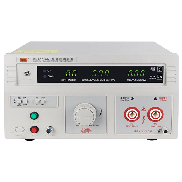 RK2671系列耐压测试仪是测量耐压强度的仪器,可以直观、准确、快速地测试各种被测对象的击穿电压、漏电流等电气安全性能指标,并可以作为高压源用来测试元器件和整机性能。