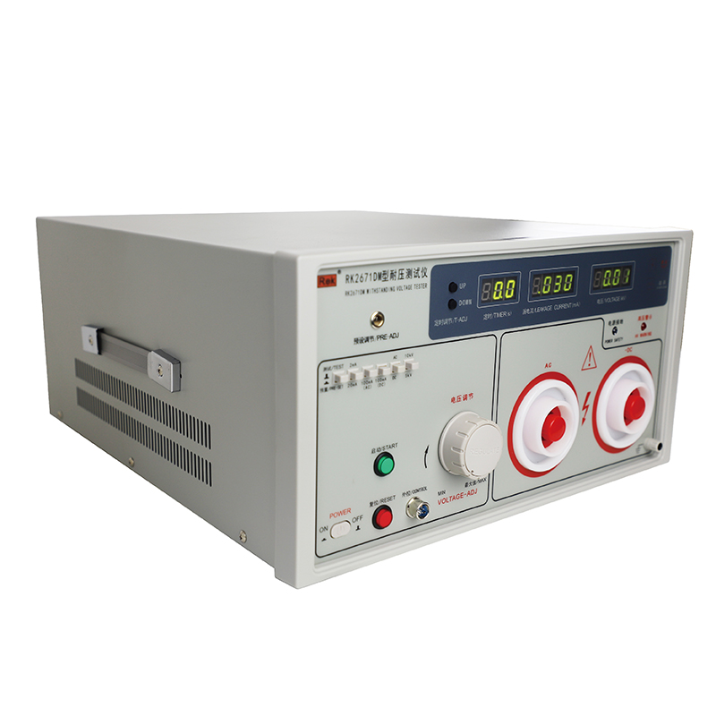 RK2671系列耐压测试仪是测量耐压强度的仪器,可以直观、准确、快速地测试各种被测对象的击穿电压、漏电流等电气安全性能指标,并可以作为高压源用来测试元器件和整机性能。