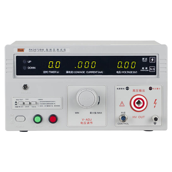 RK2672系列耐压测试仪是测量耐压强度的仪器,可以直观、准确、快速地测试各种被测对象的击穿电压、漏电流等电气安全性能指标,并可以作为高压源用来测试元器件和整机性能。