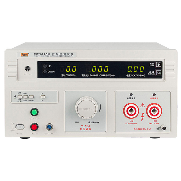 RK2672系列耐压测试仪是测量耐压强度的仪器,可以直观、准确、快速地测试各种被测对象的击穿电压、漏电流等电气安全性能指标,并可以作为高压源用来测试元器件和整机性能。