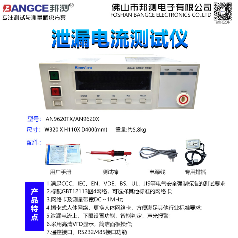 泄漏电流测量范围20~5000μA,分辨率:1μA