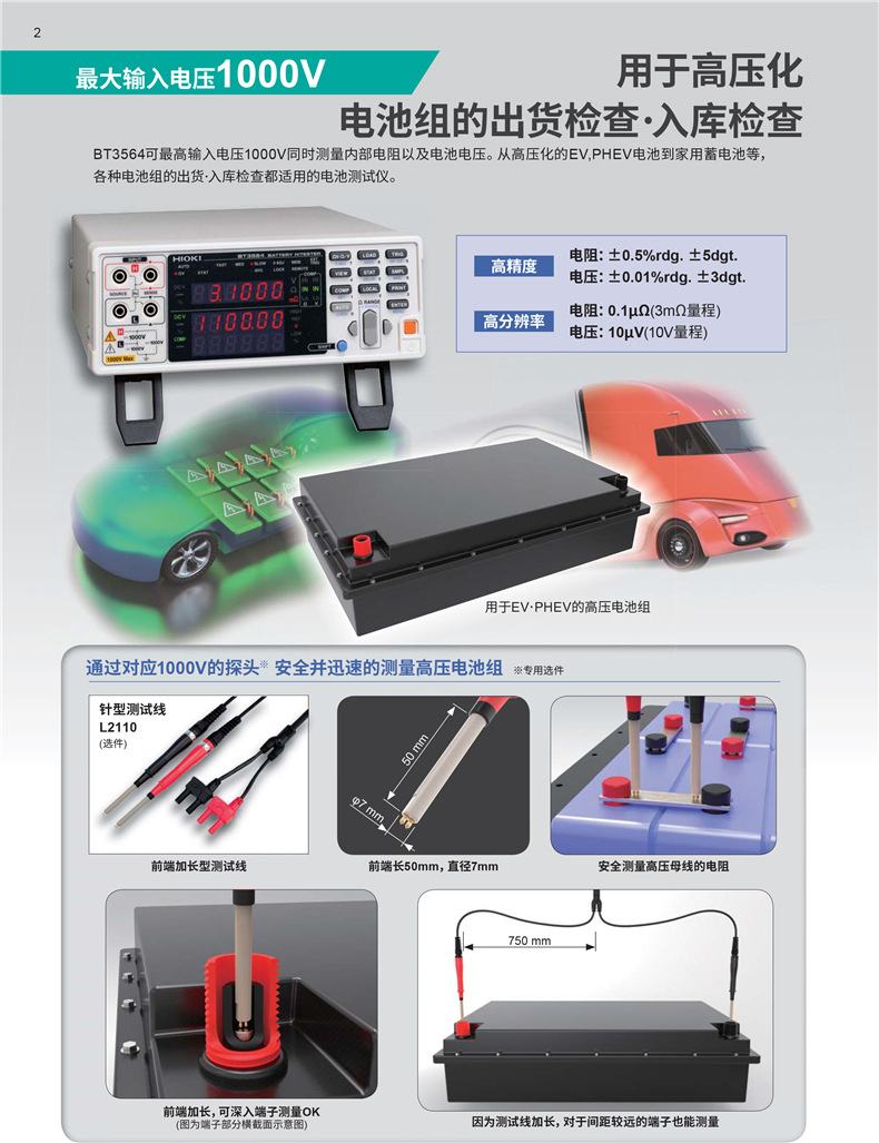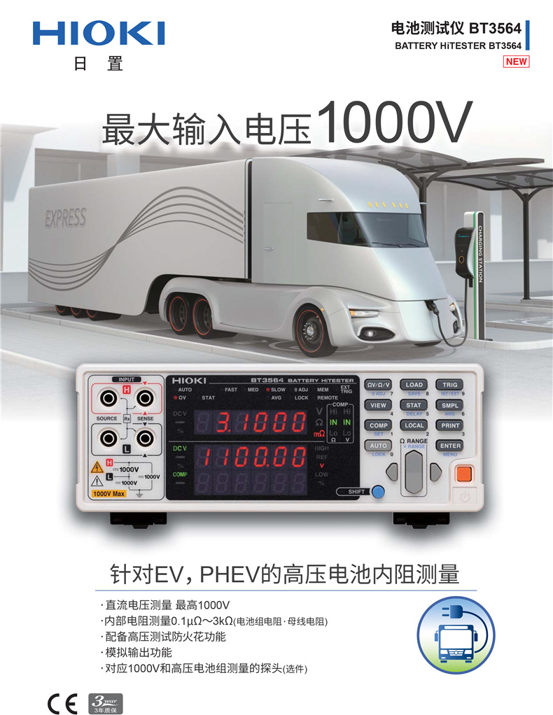 输入电压1000V,针对EV、PHEV的耐高压电池测试仪