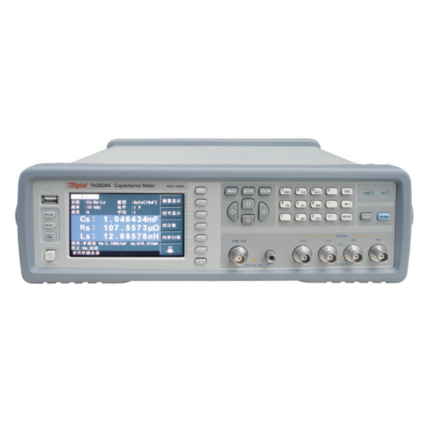 TH2638系列高速精密电容测量仪是具有高达1MHz测试频率的新型电容测量仪,体积小,紧凑便携,便于上架使用。4.3寸的LCD屏幕可选中英文操作界面,操作方便快捷。