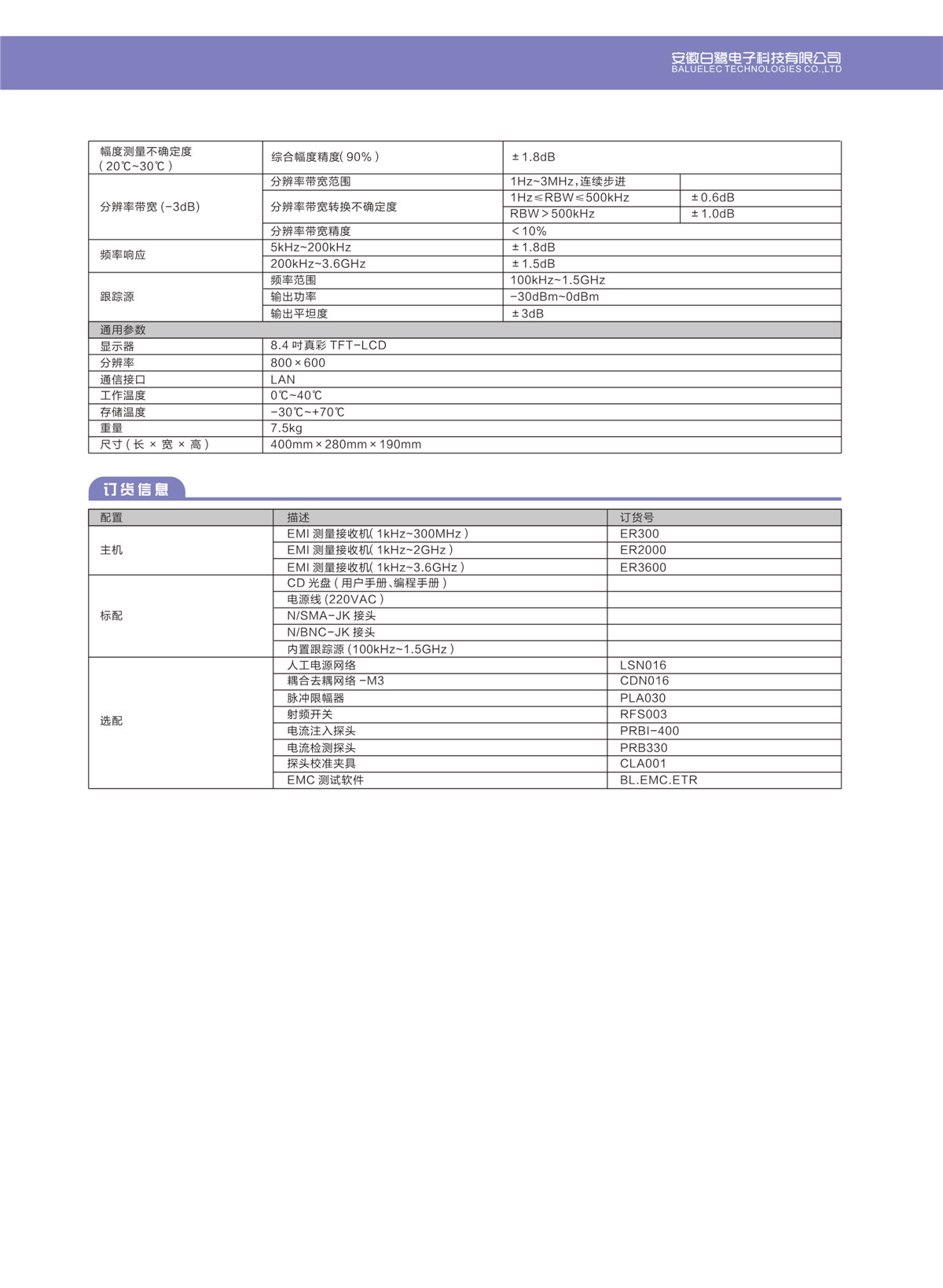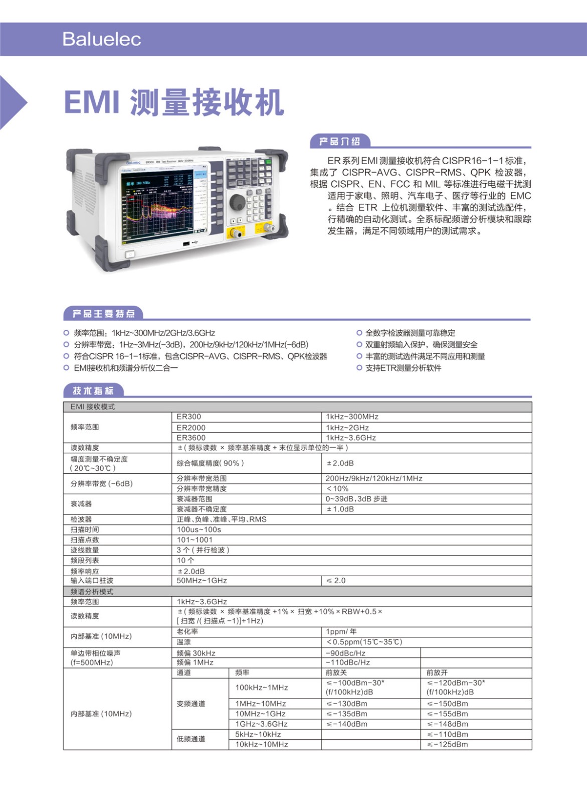 Baluelec EMI 测量接收机 ER300 ER2000 ER3600
