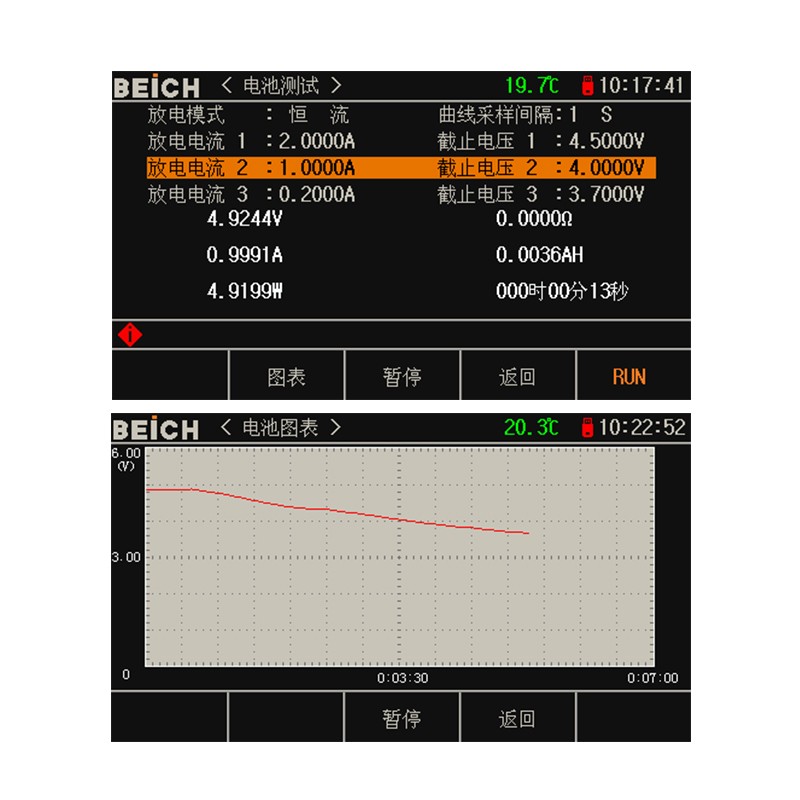█ 电池测试模式,可测试电池耐力和容量,并带内阻测试与曲线描绘功能