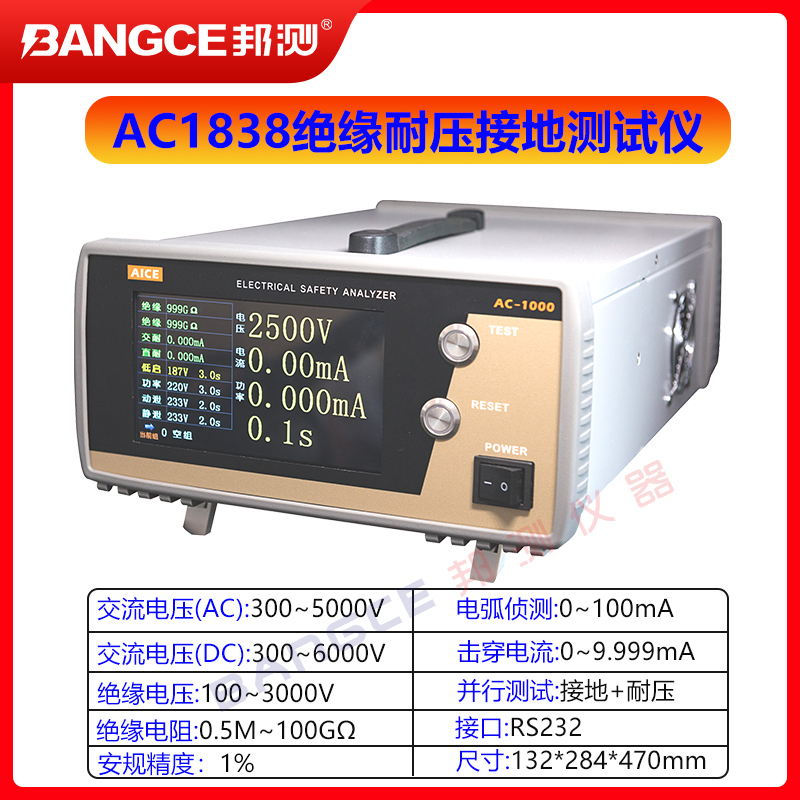 AC1838型台式安规分析仪具有交/直流耐压、绝缘电阻和接地电阻等测试功能,仪器采用触控屏设计,操作简便,显示直观;功能电路高度集成,实现模块化和故障自我诊断功能,售后便捷;该产品功能完备,精度高,更符合标准和法规要求;测试数据本机缓存,通过WiFi通讯和上位机软件,可以多台仪器对接一台电脑,实现测试数据的上传、储存和分析,软件还具备界面监测、断网续传等实用功能。