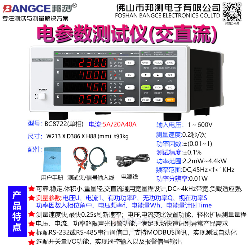 6.标配RS-232或RS-485串行通信口,支持MODBUS通讯,轻松实现测试自动化