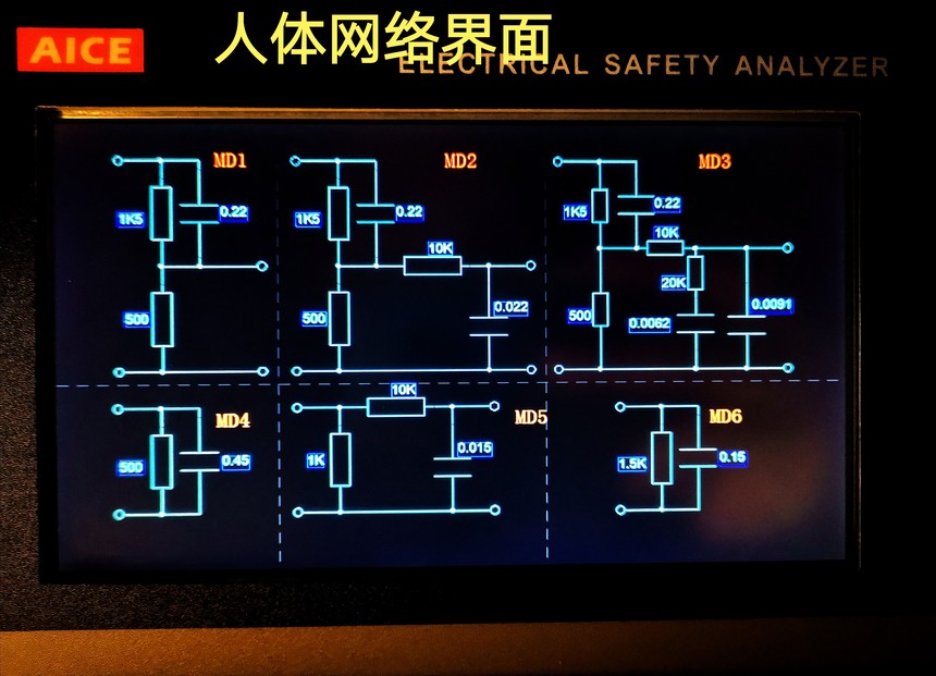 c) 内置6种常用模拟人体网络阻抗电路(MD卡),一键选用;