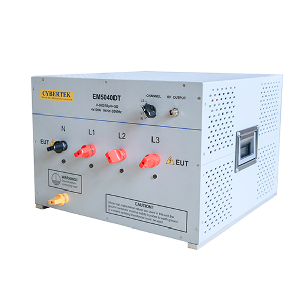 EM5040DT人工电源网络是一款(50uH+5Ω)||50Ω V型 三相LISN(Line Impedance Stable Network)。该产品能在9kHz—30MHz射频范围内为被测试设备端子和参考地之间提供稳定的阻抗,同时又将来自电网的无用信号与测量电路隔离开,仅将被测试设备的干扰电压耦合到测量接收机的输入端。该产品的性能符合CISPR16-1-2:2006标准要求,适用于三相设备传导骚扰电压测量。标准的BNC输出接口和50欧姆输出阻抗,可匹配任何厂家的接收机、频谱仪等测量设备。