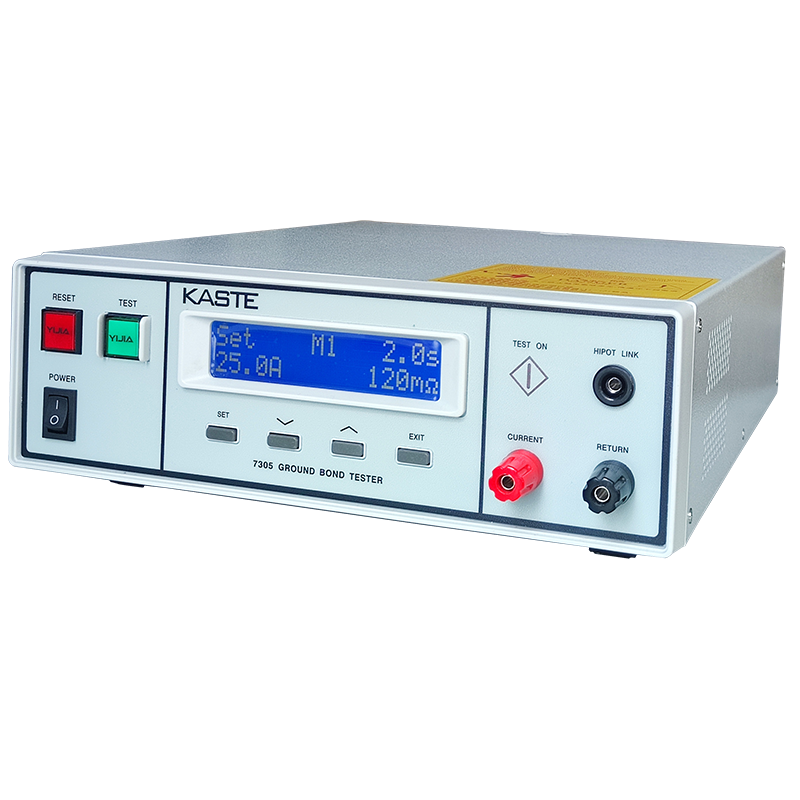7305程控接地电阻测试仪是用来测量电气设备内部的接地电阻,它所反映的是电气设备的各处外露对地部分与电气设备的总接地端子之间的(接触)电阻。采用微机控制,两端测量法,即在被测电器的外露对地部分和总接地端子之间加上电压,然后再测量这两端的电流,算出其电阻值。性能满足GB4706.1-2005、GB9706.1-2007等国内外安规测试标准,符合JJG984-2004安规计量检定规程要求。