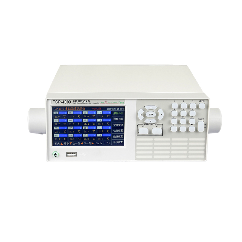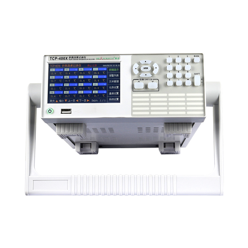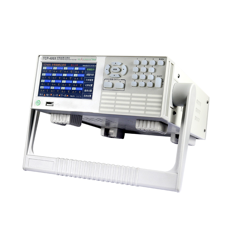 TCP-400X系列多路温度记录仪是一款精确快速、稳定可靠、功能齐全、操作方便、高性价比的测温仪器。以其丰富的显示画面、灵活的操作方式以及强大的记录、运算和管理功能获得了极其广泛的应用。该多路温度记录仪主要由触控液晶屏、按键、ARM 微处理器为核心的主板、主电源、隔离采样板、大容量 FLASH,温度探测器等构成: